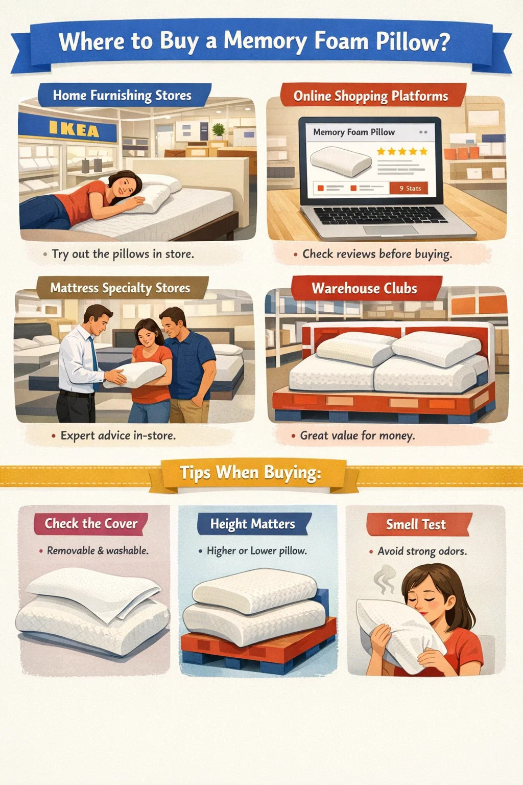 If you're planning to buy a memory foam pillow, there are many places where you can find them. However, different purchasing channels have their own advantages and disadvantages. To help you find the most suitable one, here are some common places to buy them and some suggestions: