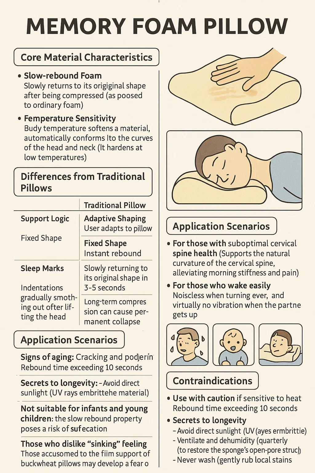 | คุณสมบัติ | หมอนเมมโมรี่โฟม | หมอนแบบดั้งเดิม (Polyfill / Down) |